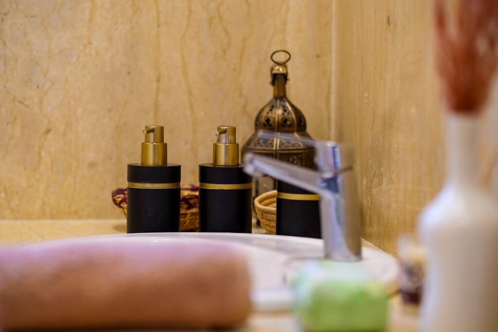 This room blends Moroccan authenticity with modern comfort: handcrafted lanterns, colorful fabrics, and amber fragrances evoke the unique energy of the Red City.