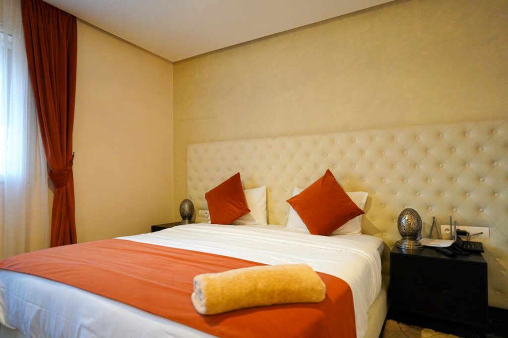 Dive into the vibrant atmosphere of Marrakech with the Jamaa El Fna Room, inspired by the famous square at the heart of the medina.