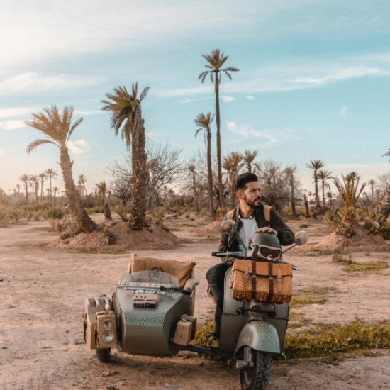 Embark on a thrilling tour of Marrakech and its surroundings in a motorcycle sidecar. Explore the city’s vibrant streets and venture into the captivating landscapes, experiencing the charm of Marrakech in a unique and unforgettable way.